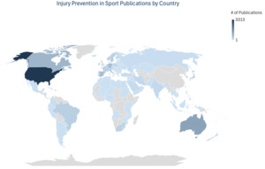 This bibliometric analysis shows that there is a growing amount of scientific interest related to injury prevention in sports, demonstrated by the exponential growth in the number of publications and the extensive amounts of collaboration networks between researchers in this area. Despite the rapid growth of this field of research, researchers from countries who seem to have more funding and infrastructure in place seem to have a larger influence on the broader area of work. This has likely led to a deficiency in proper global representation and the successful implementation of injury prevention programs. Consequently, this suggests that it is of greater importance to further spread the knowledge of injury prevention in this field and to start expanding research focus to include more underrepresented populations. These efforts could lead to not only the longevity of the performance of athletes in sports but could also lower the costs of healthcare costs and improve public health.