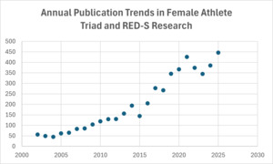 The results of this bibliometric analysis show a consistent rise in publications on RED-S and Female Athlete Triad, along with a marked trend toward increasing concentration of such publications from a small subset of nations, universities, researchers and funders.