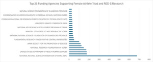 The analysis of the funding sources showed that most funding was from national government agencies; with the largest being the National Natural Science Foundation of China, and other agencies were located in South Korea, Japan and the USA. The fact that the majority of the funding came from these sources shows that the Female Athlete Triad and RED-S are being seen as Public Health issues, which could have long term implications for both athlete performance and their overall health. While this is good news, it does show that the reliance on government funding can limit where research is conducted, the topics that will be researched, and create inequities in terms of the regions that have less funding to explore regional specific issues.