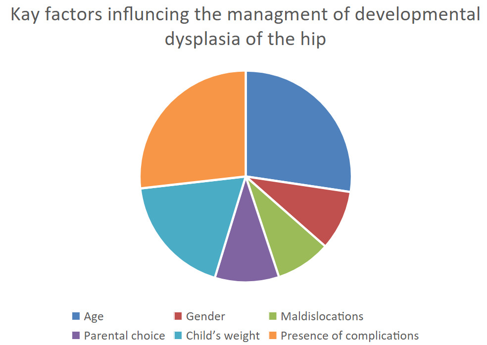 Figure 2 depicts participants’ awareness of factors influencing the management of DDH in children. The frequently reported factors included age (204, 50.9%), presence of complications, (200, 49.9%), and the child’s weight (138, 34.4%).