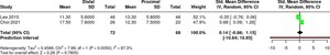 The results showed an SMD of –0.72 (95% CI –1.30 to –0.13), indicating that distal osteotomy provides better DMAA correction than proximal osteotomy. Since there was only one study, heterogeneity could not be calculated (Table 7).