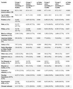 Direct comparison of 6,667 matched pairs showed no significant residual imbalance in baseline characteristics (Tables 3, 8, and 9).