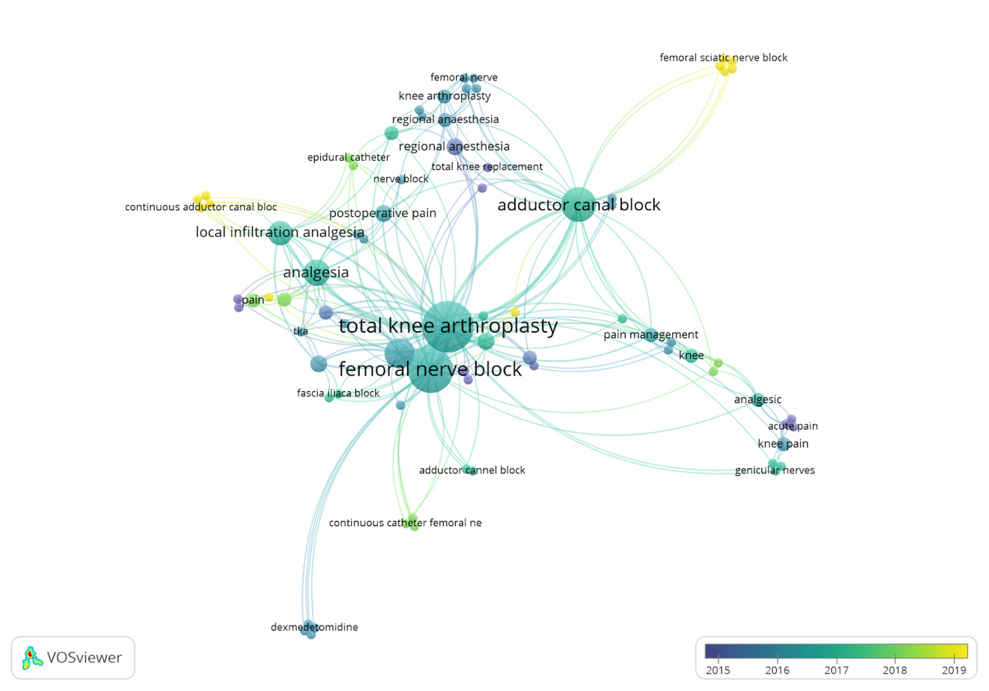 According to keyword analysis, the latest research trends in nerve block techniques for knee replacement surgery emphasize optimizing pain management strategies. Among the most extensively studied approaches, FNB and ACB have emerged as central themes in recent literature.